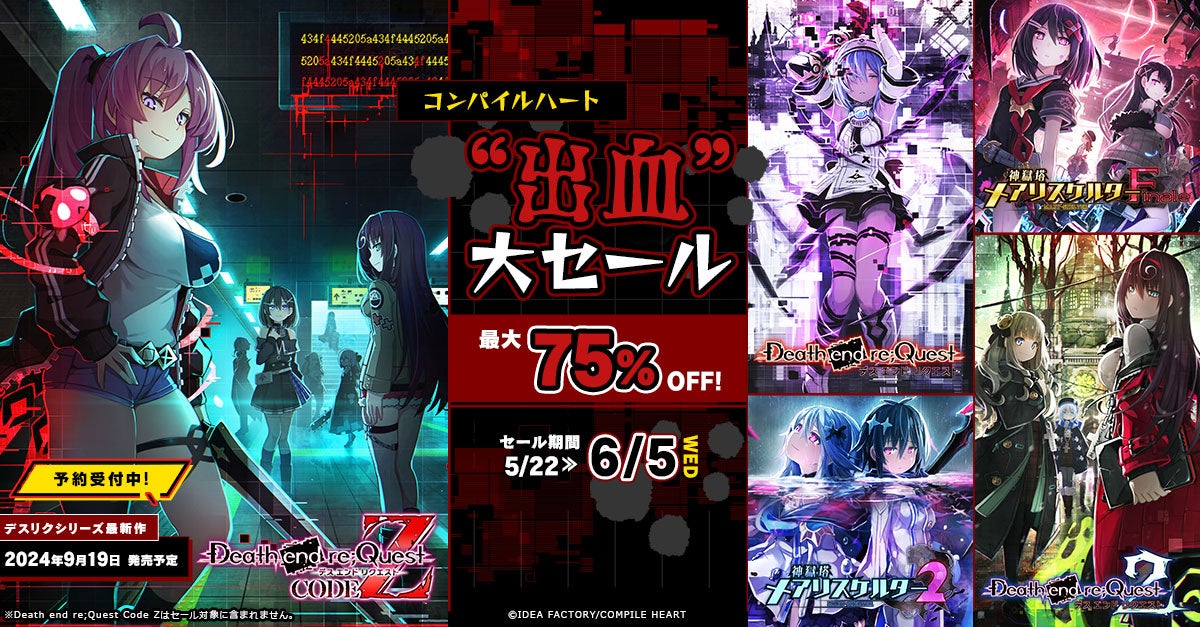 コンパイルハートのゲームがお得な大セール中!対象は「デスリク」シリーズや「神獄塔メアリスケルター」シリーズなど。