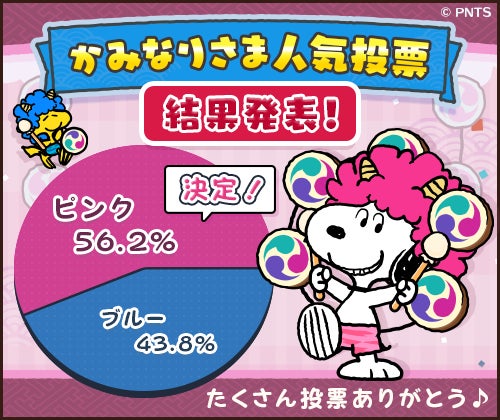 人気投票で選ばれた「ピンクのかみなりさま」もイベントに登場!イベントや豪華景品が盛りだくさんです。