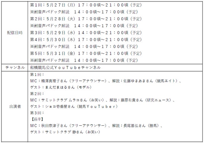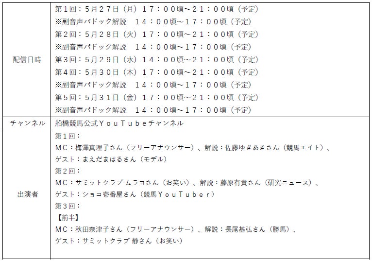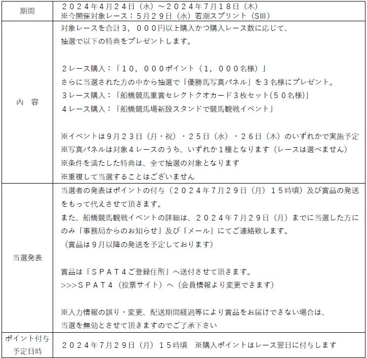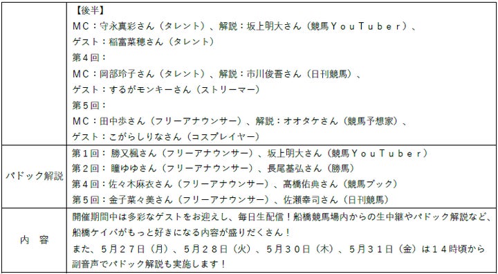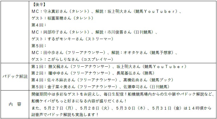 船橋ケイバでは、令和6年度第3回開催が5月27日(月)から5月31日(金)まで行われます。
