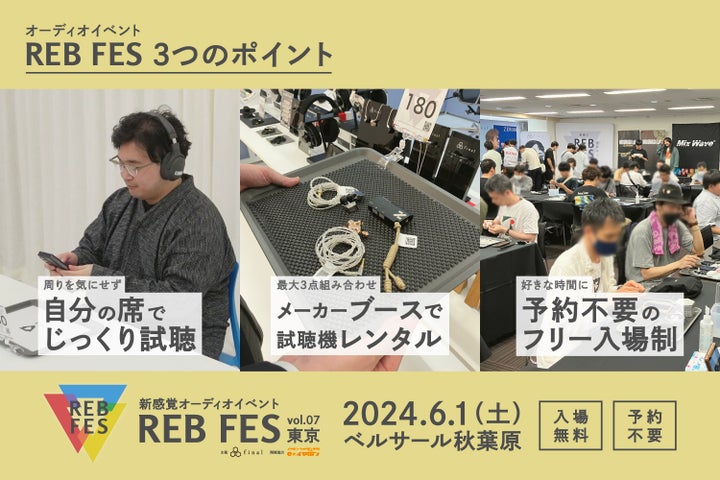 株式会社final主催の新感覚オーディオイベント「REB fes vol.07@東京」では、250席のフリー試聴席と1500台以上の試聴機を用意。