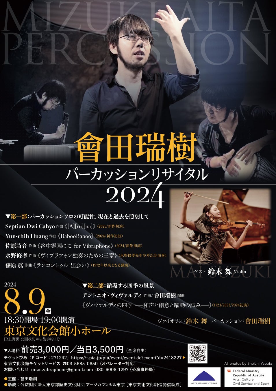 會田瑞樹のパーカッションリサイタル2024も8月9日に開催され、多彩な演目が予定されています。