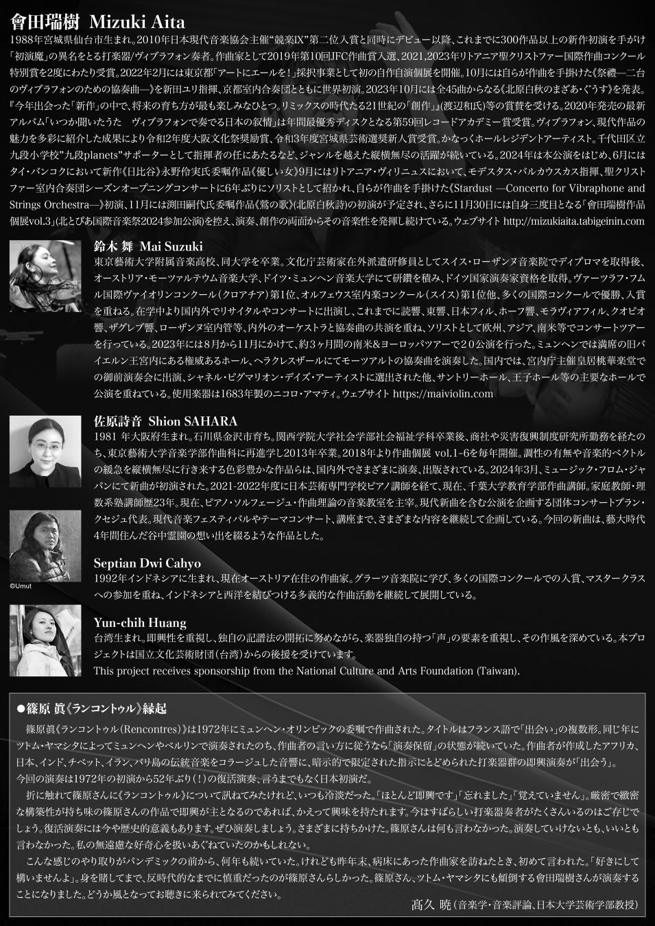 - 2022年には《四季より”冬”》も演奏され、篠原眞氏の作品も注目