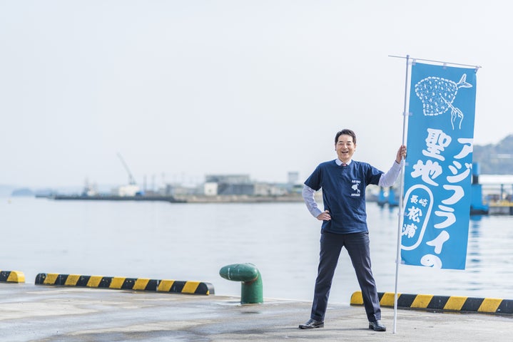 - 松浦市でアジフライのラッピング車内で「アジフライに味ぽん」紹介
