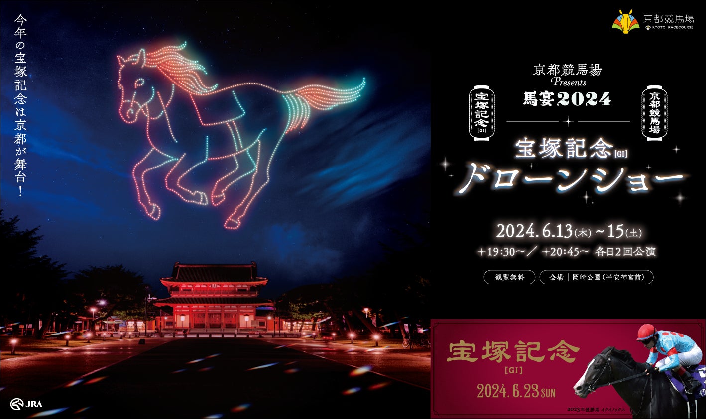 2024年の宝塚記念を盛り上げる「京都競馬場Presents 馬宴2024 宝塚記念ドローンショー」が開催されます。