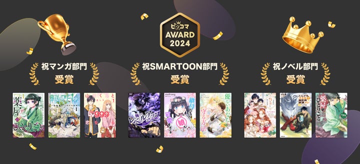 マンガ、SMARTOON、ノベル部門からそれぞれ3作品が受賞しました。
