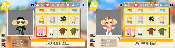 プレイヤーは300種類以上のコーデパーツで自分だけのおサルを作成できます。