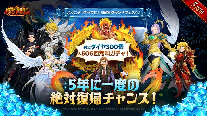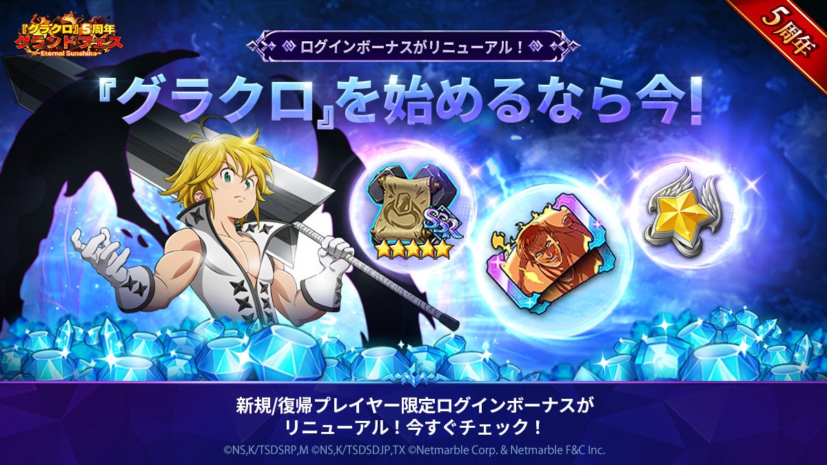 『グラクロ』のサービス5周年を記念して、【5周年グランドフェス ~Eternal Sunshine~】が開催されます。