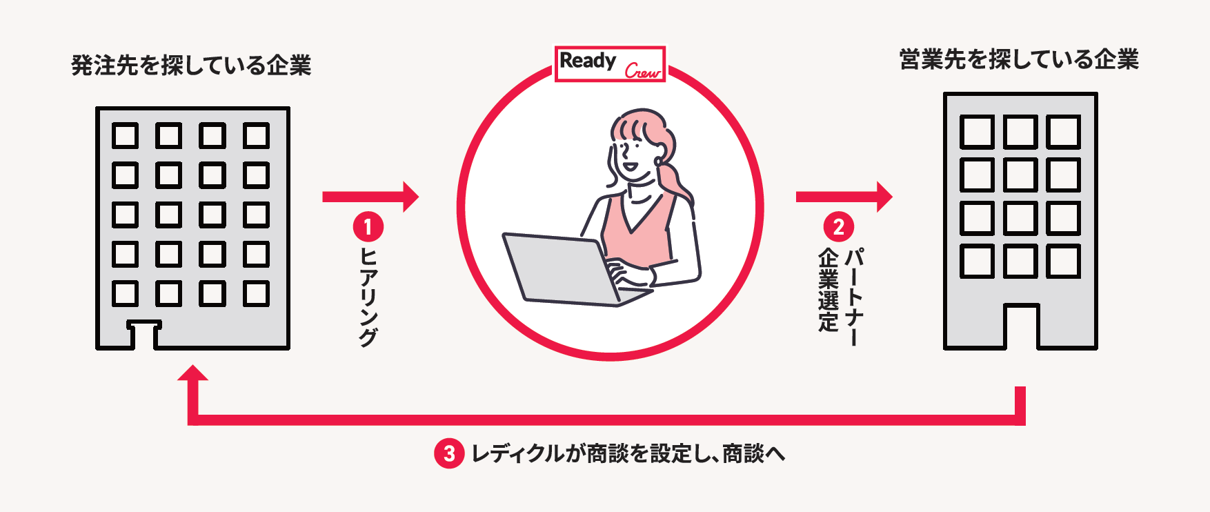 - レディクルは企業と企業をつなぐビジネスマッチングエージェントサービス。