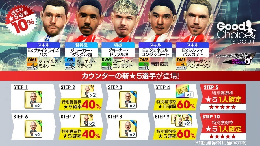- 現役選手が★5選手として登場、特典付きスカウトで獲得チャンス