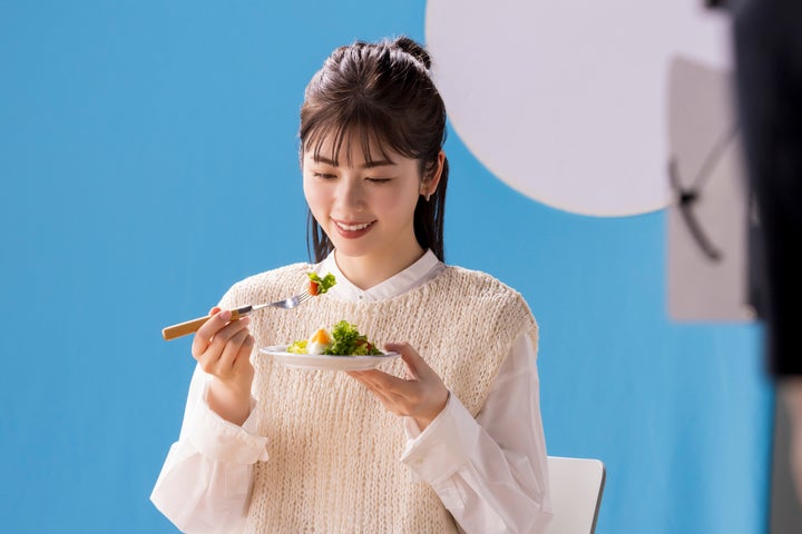 小芝さんは生徒役で「オメガ3」の重要性を学び、日清アマニ油の摂取方法を紹介します。