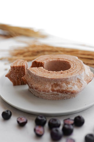 ユーハイム主催の「ファイナルクーヘン総選挙」で1位を獲得した「能登塩ぶるべりばぁむ」は、米粉100%のバウムクーヘンで、ひらみゆき農園のブルーベリーソースと能登の塩を使用しています。