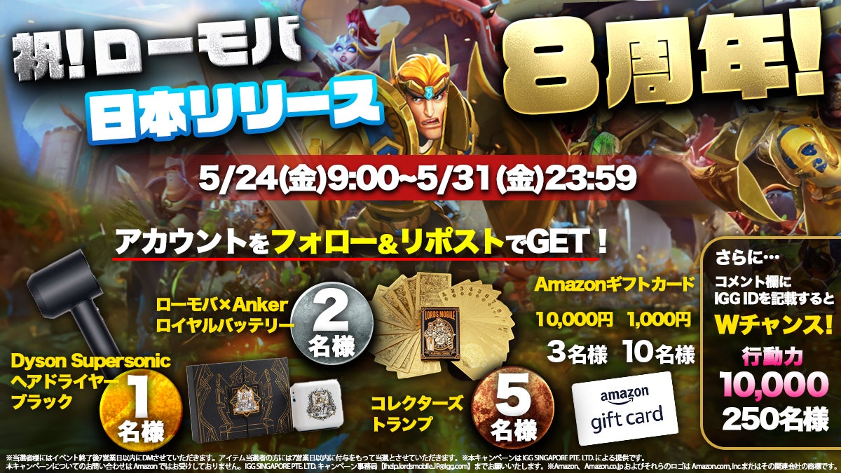 公式Xにて、ロードモバイルの日本リリース8周年記念キャンペーンが開催中です。