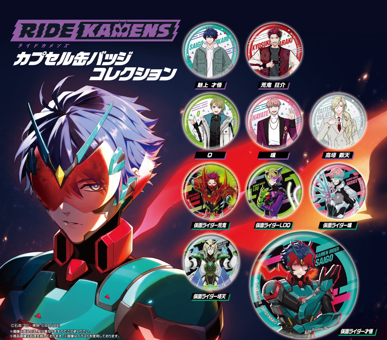 - 5月30日にリリース予定の新作スマートフォンアプリゲーム『ライドカメンズ』のキャラクターホログラム缶バッジコレクション