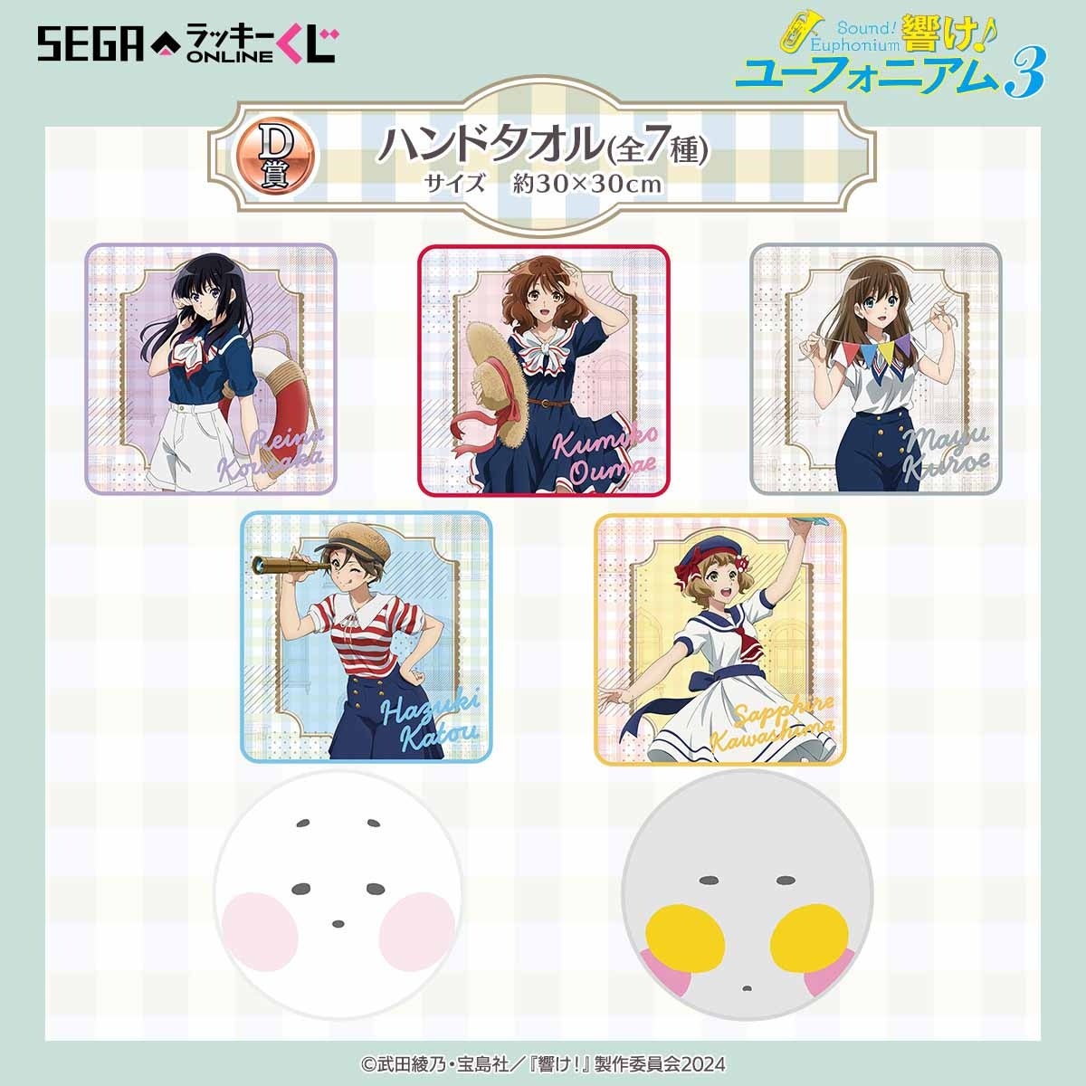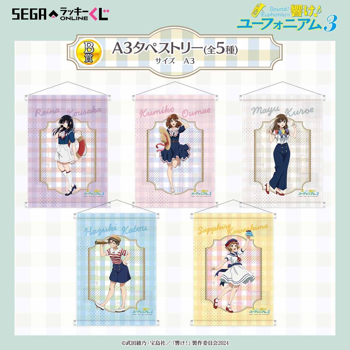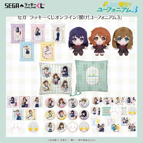 セガのラッキーくじオンライン「響け!ユーフォニアム3」とTVアニメのコラボ企画では、マリンスタイルの限定アイテムやキャスト直筆サイン入りアイテムが当たります。