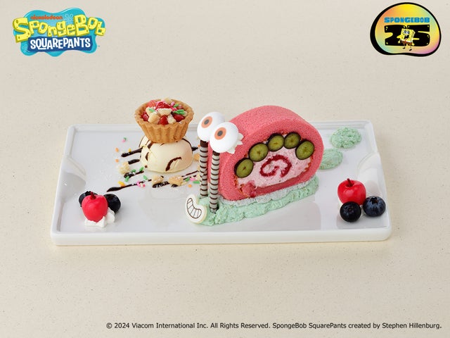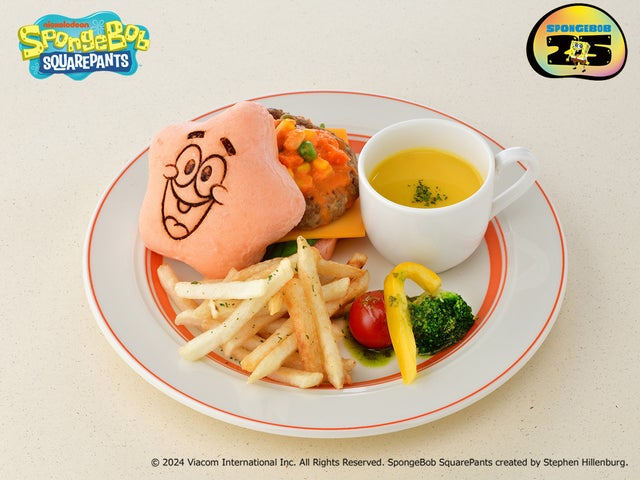 注目のメニューには、スポンジ・ボブやパトリックをモチーフにしたサンドイッチプレートやハンバーガープレート、パイナップルチーズケーキなど、キャラクターをモチーフにした18種類のフードやデザートがあります。