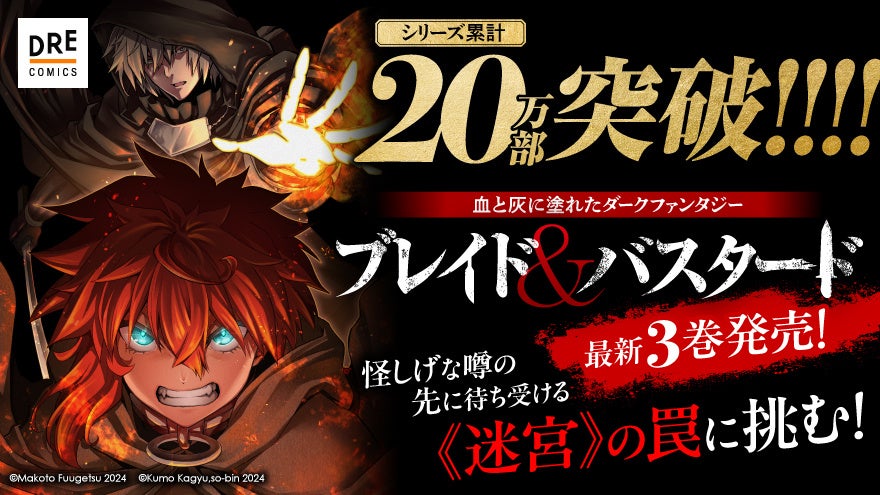 株式会社ドリコムの「ドリコムメディア」が、名作RPG「Wizardry」の世界観を活かしたダークファンタジーコミック『ブレイド&バスタード』シリーズ第3巻を2024年5月24日に発売し、累計20万部を突破しました。