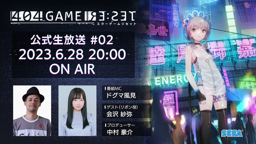 セガがリリースした『404 GAME RE:SET -エラーゲームリセット-』の最新情報を発表する生放送が6月28日に配信される。
