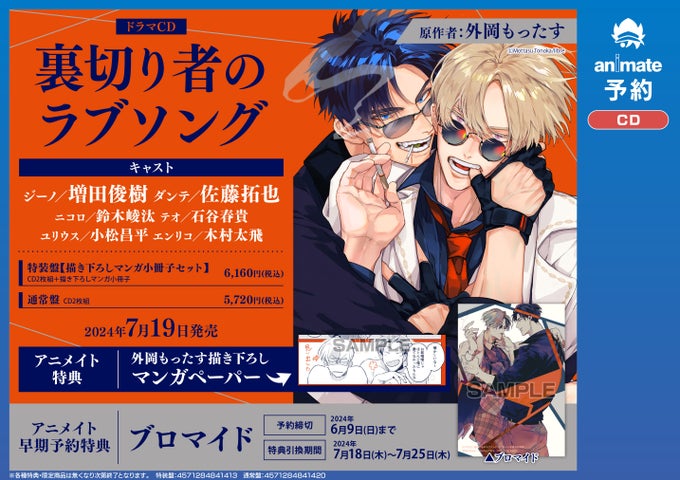 - 7月19日に「裏切り者のラブソング」ドラマCD発売