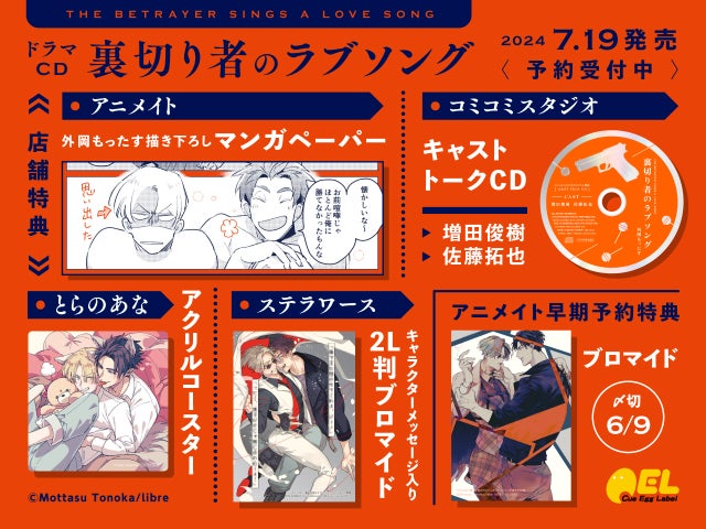 株式会社リブレは7月19日、Cue Egg LabelからドラマCD「裏切り者のラブソング」を発売します。