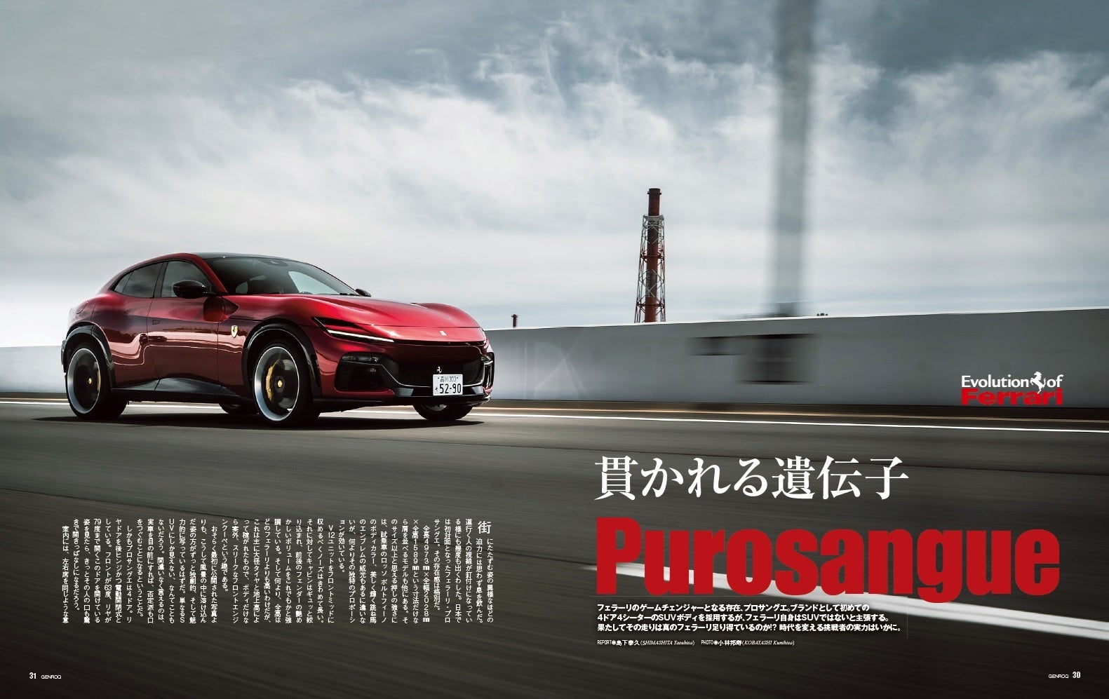 - 特集は「フェラーリの未来」で、V12気筒モデルやSUVが紹介
