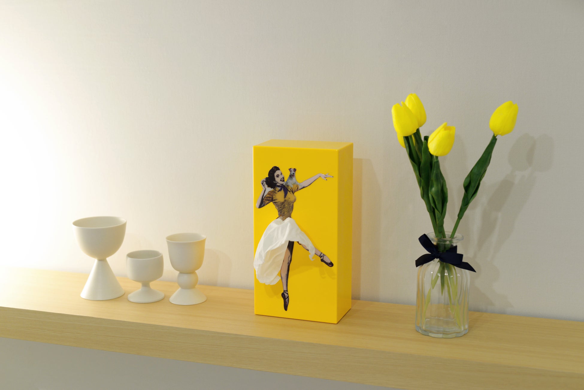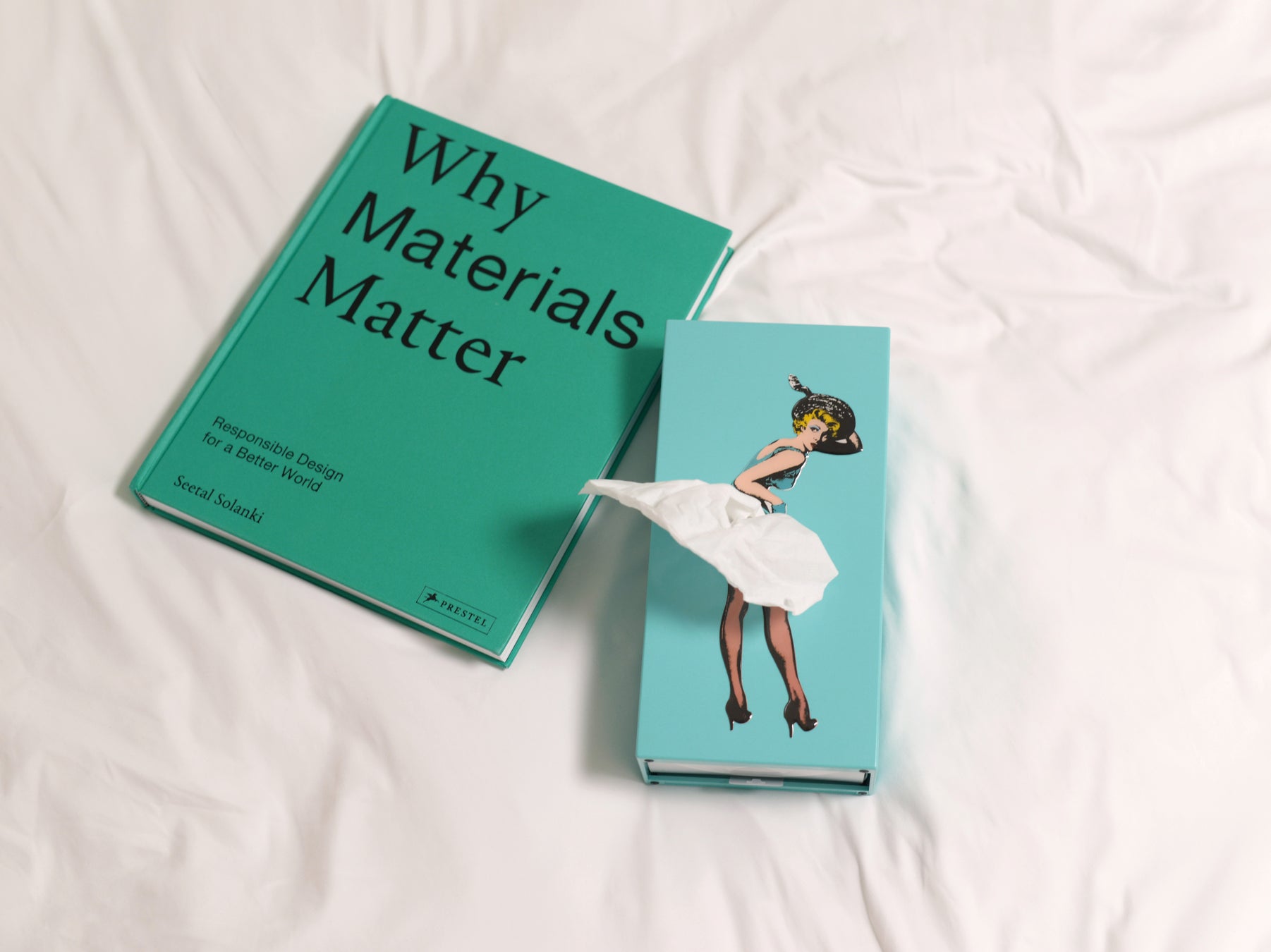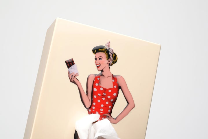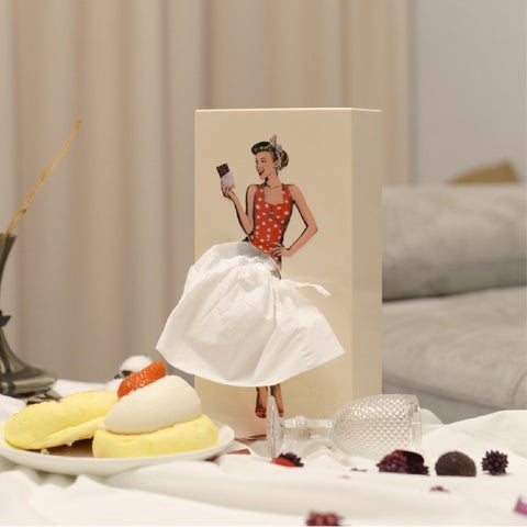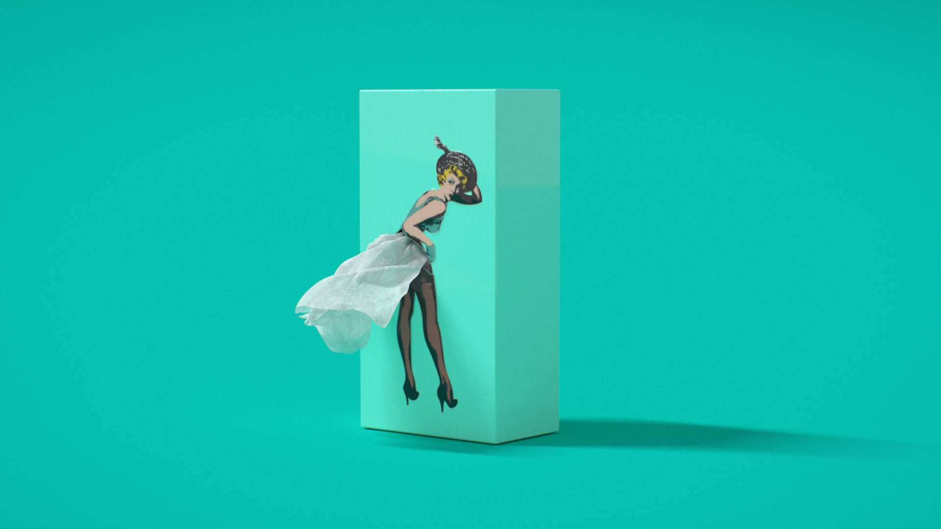 彼らの新作「フラッパーティッシュ/ティッシュアップガール」は、ティッシュをスカートに見立てたティッシュケースで、女性のイラストが描かれたメタル素材のケースが特徴です。
