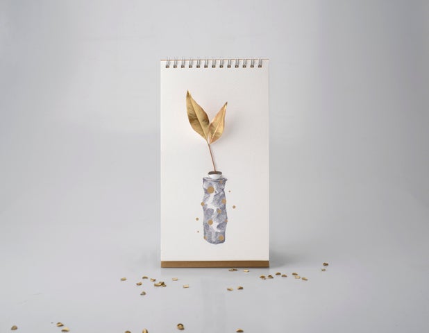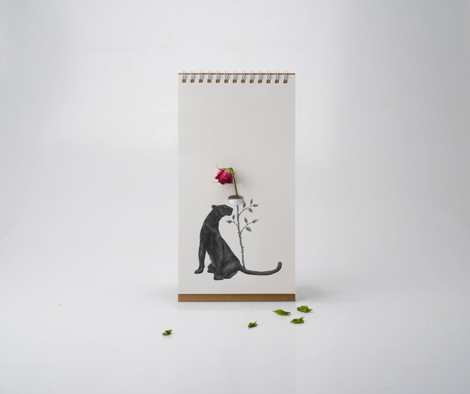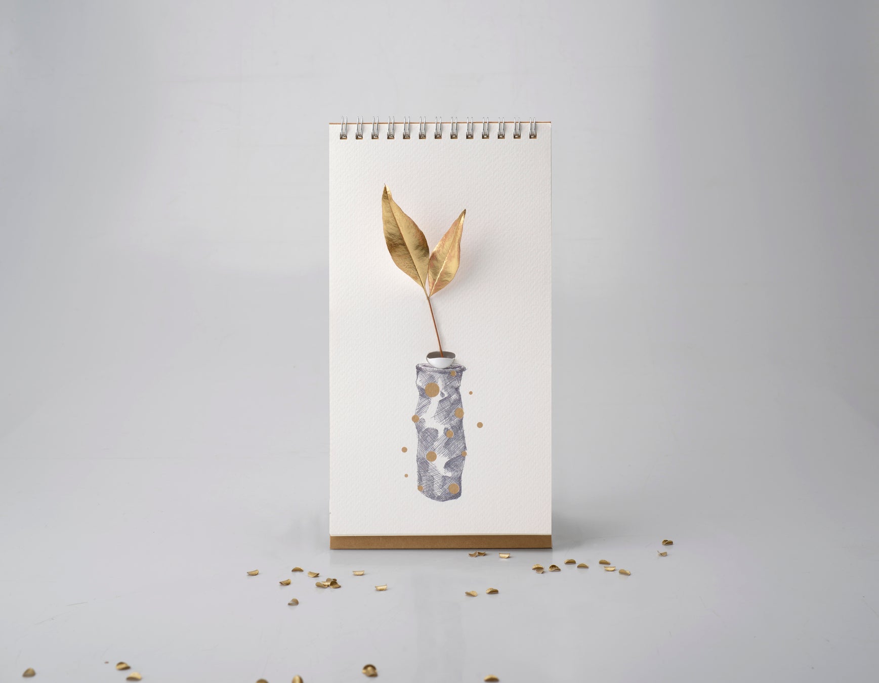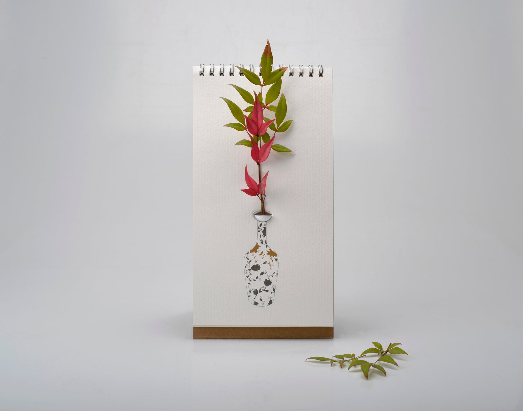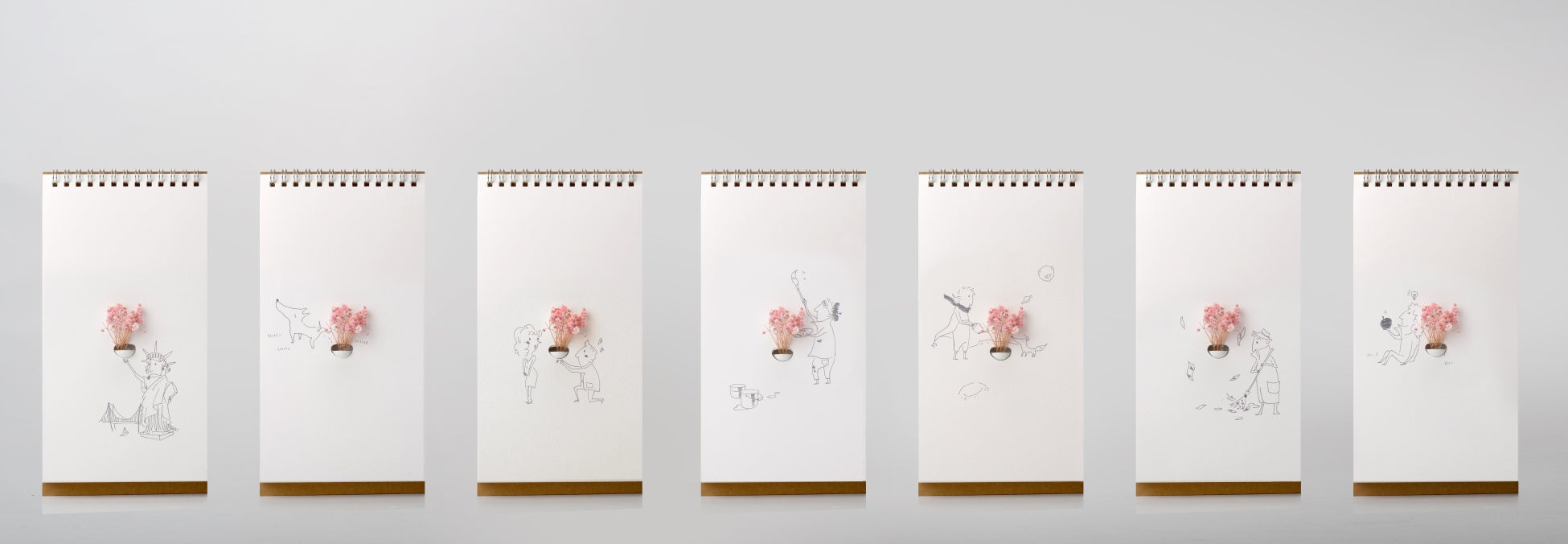 スケッチブックに描かれたイラストから本物のお花が飛び出るデザインで、気分に合わせてデザインを変えることができます。