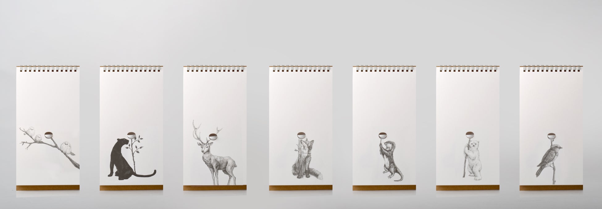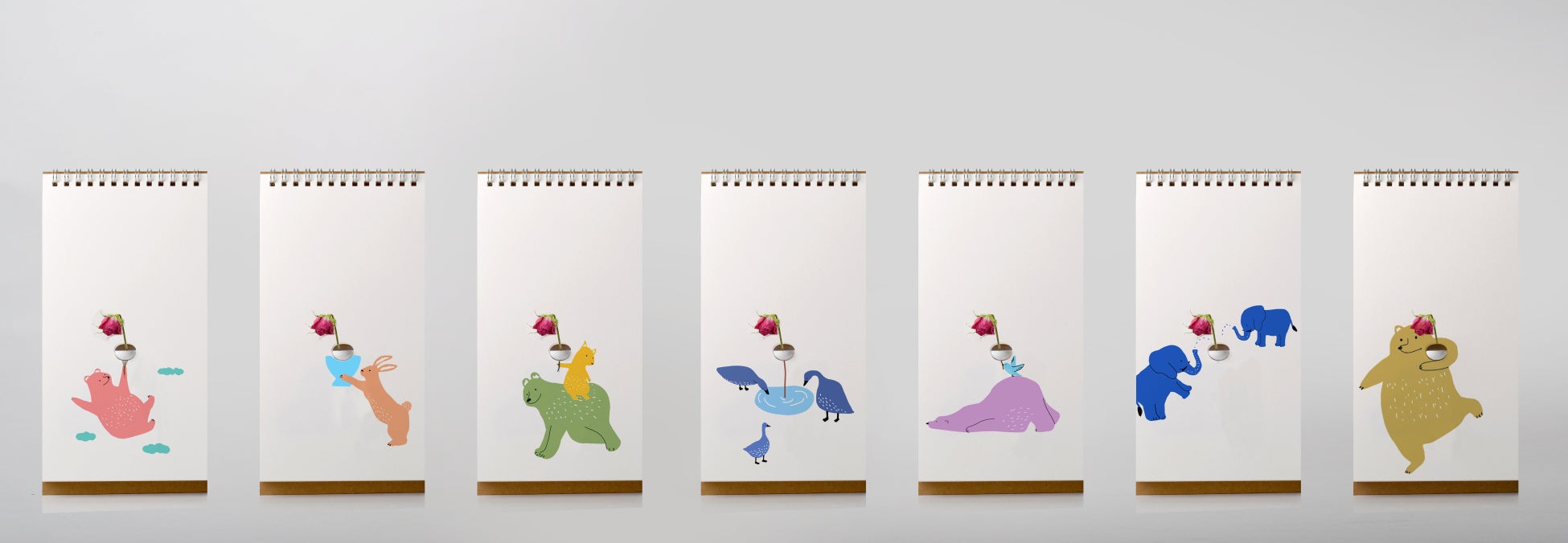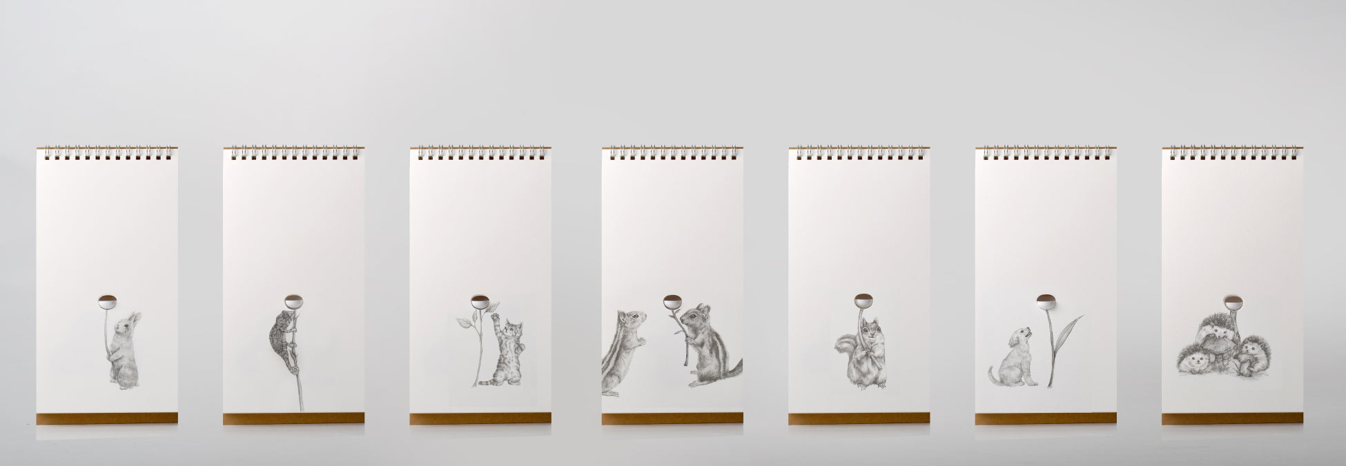 - スケッチブックに描かれたイラストから本物のお花が飛び出るデザイン