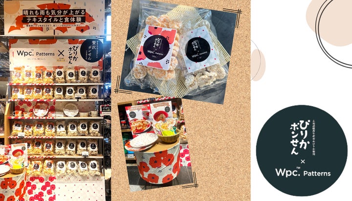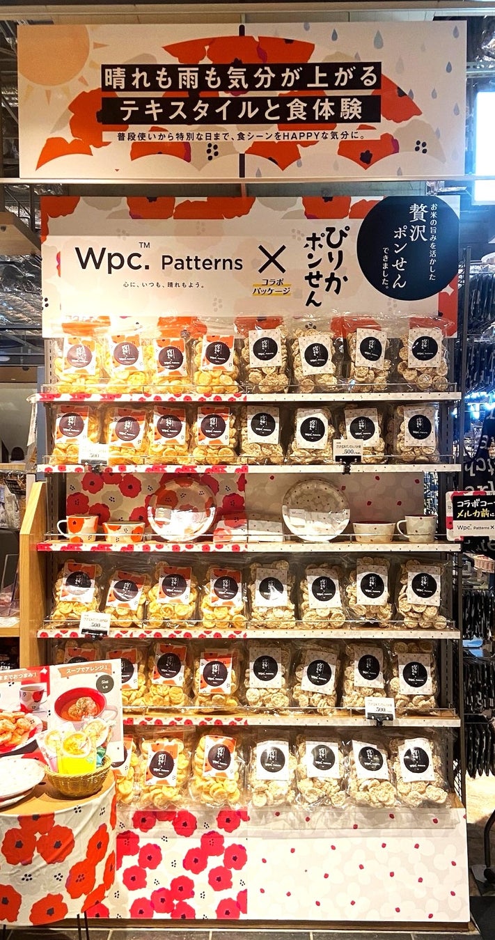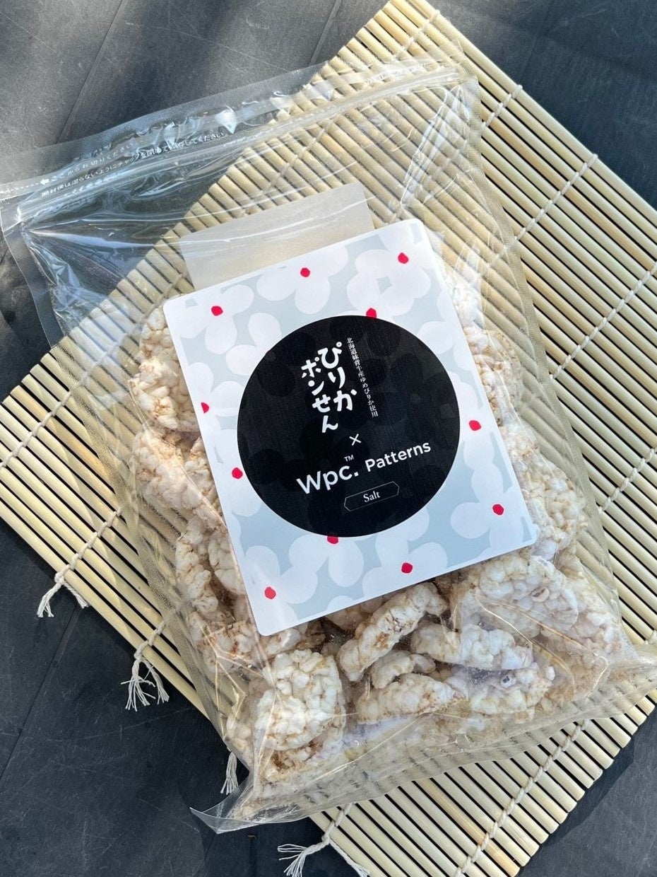 大阪のルクアで展開中の「ぴりかポンせん」とテキスタイルデザインブランド「Wpc. Patterns」がコラボ!北海道産ゆめぴりかを使用し、お米の旨味を楽しめる人気菓子が数量限定で販売中。