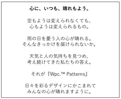 Wpc. Patternsはテキスタイルデザインを通して、晴れやかな心を彩る製品づくりを目指しています。