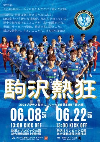 スフィーダ世田谷FCは、6月8日と6月22日に駒沢オリンピック公園総合運動場で試合を開催します。