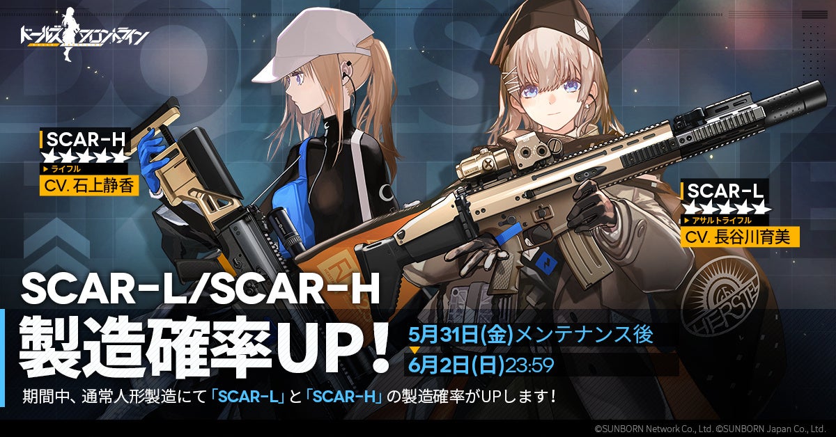 さらに、5月31日からは「SCAR-L」と「SCAR-H」の製造確率がUPし、イベント「エクリプス・サロス」で活躍する人形を手に入れるチャンスが訪れます。