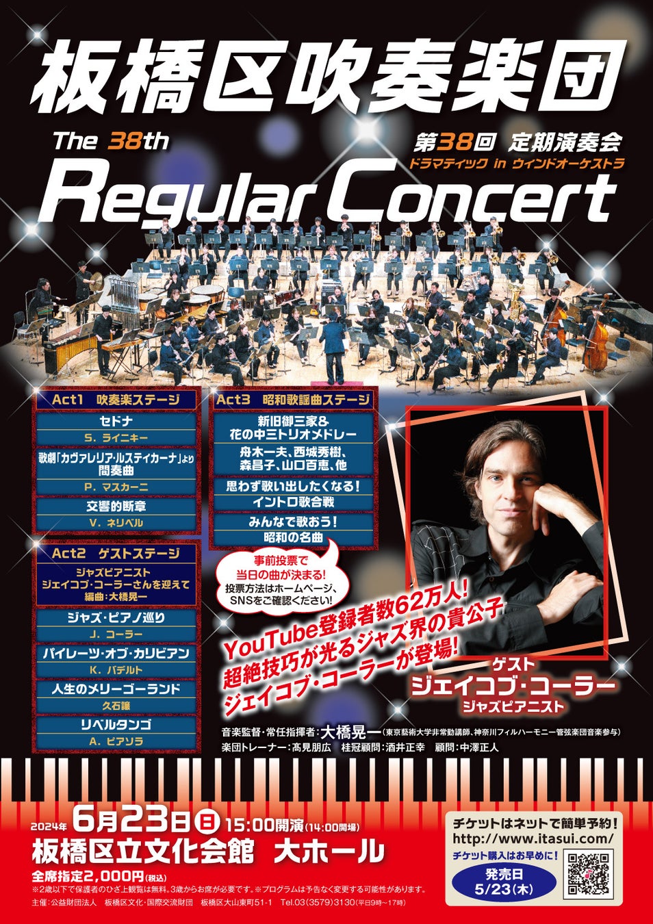 板橋区吹奏楽団の第38回定期演奏会が2024年6月23日に開催されます。