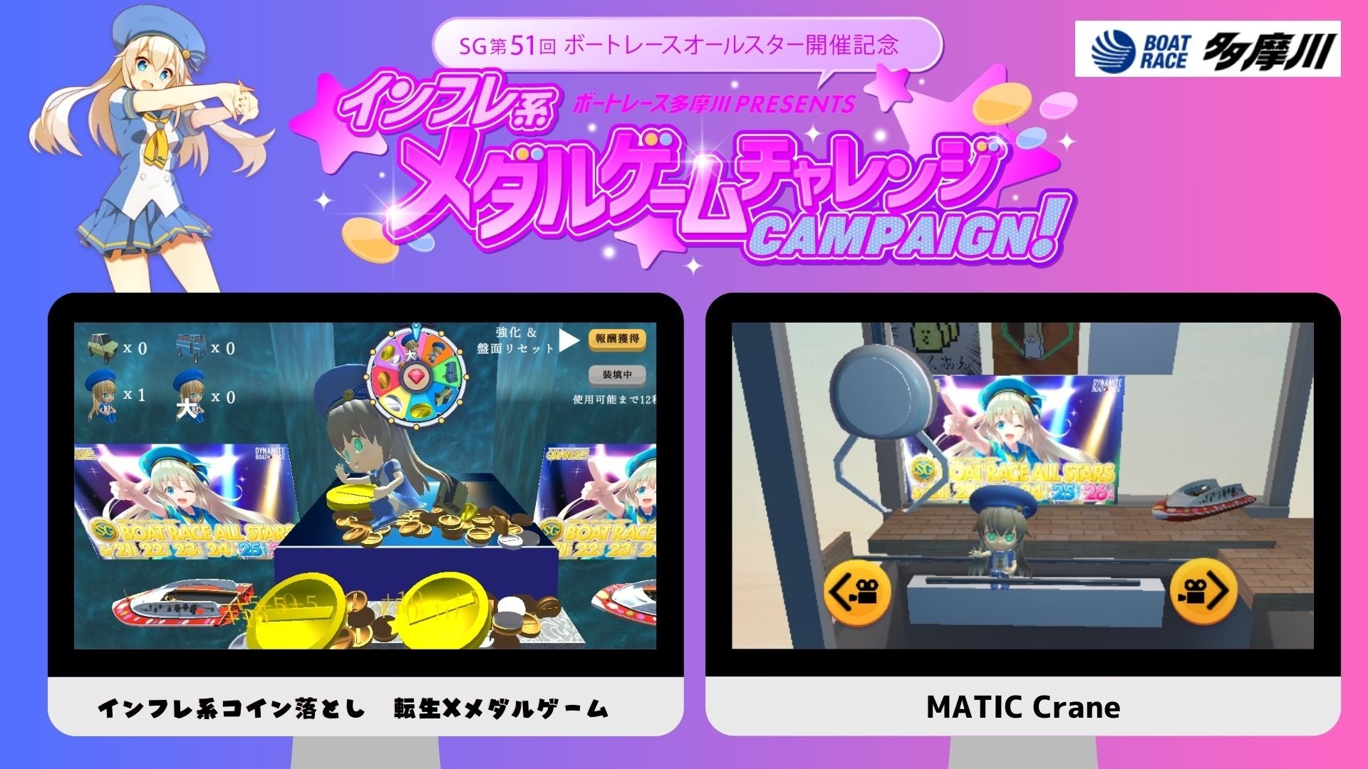 期間中は、ボートレース多摩川のイメージキャラクター「静波まつり」が2つのゲームに登場し、ボートレースをテーマにしたゲームが楽しめます。