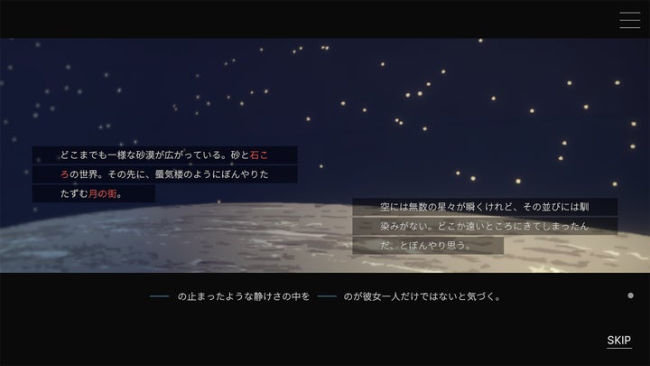 このゲームは、プレイヤーが異世界を探索するミュージックビデオ風のテキストアドベンチャーゲームで、夜に不思議な場所を訪れる要素があります。