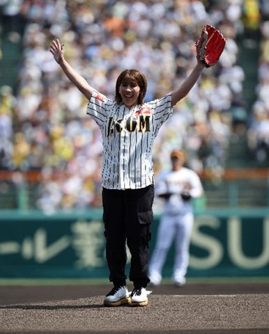 吉田沙保里さんが阪神甲子園球場で始球式を行い、ノーバウンド投球で会場を沸かせました。