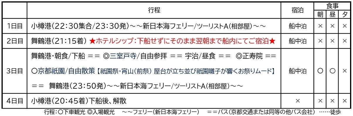 新日本海フェリーでの4日間の旅行で祇園祭を満喫できます。