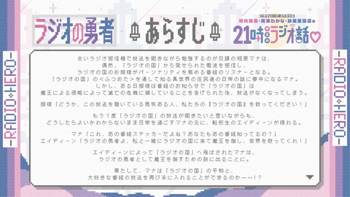 さらに、オリジナルストーリーラジオドラマ「ラジオの勇者」も放送されます。