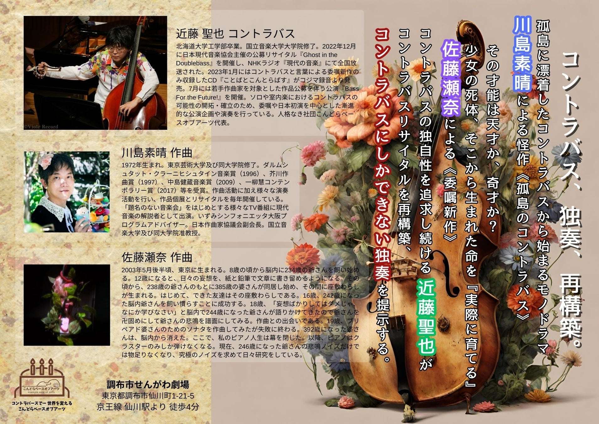 - 2024年6月3日、調布市せんがわ劇場で近藤聖也のコントラバスソロリサイタル