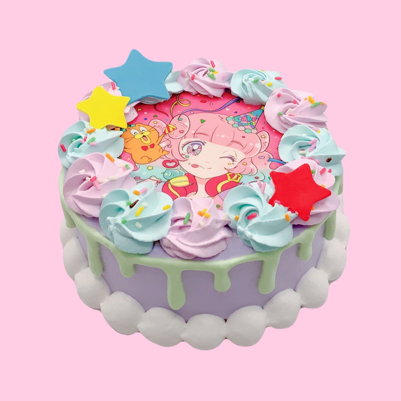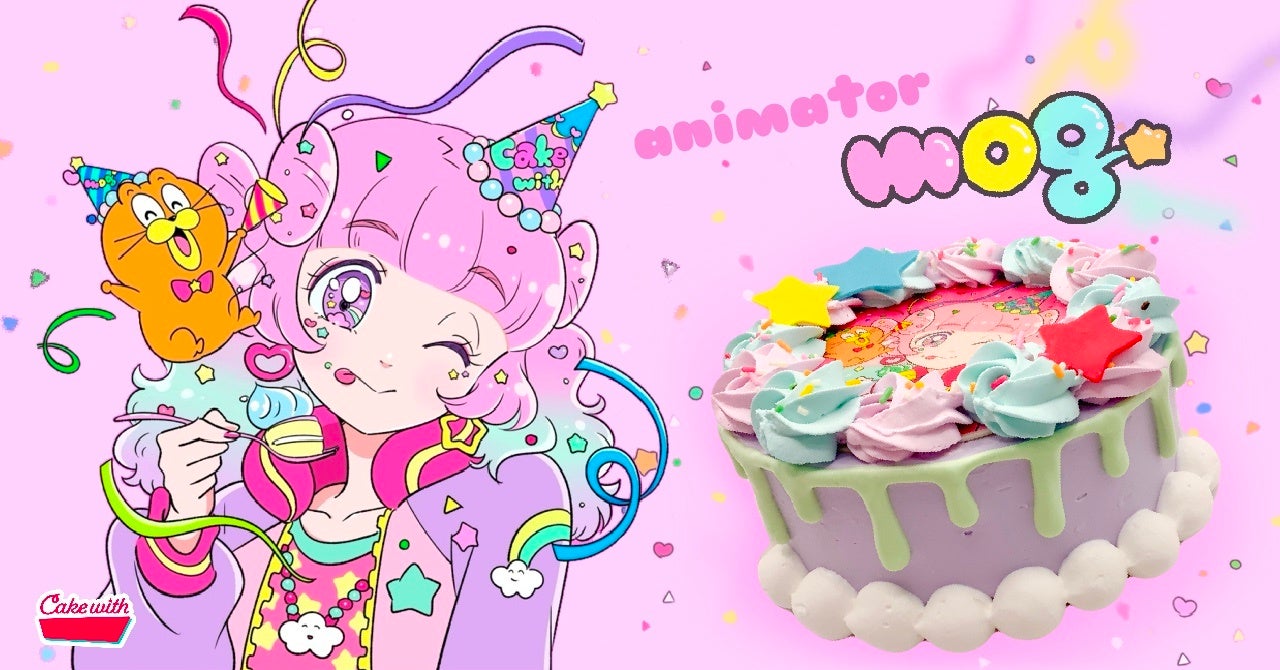 イラストレーターmogのデコレーションが施されたカラフルなケーキは、かわいくて楽しい時間を提供します。