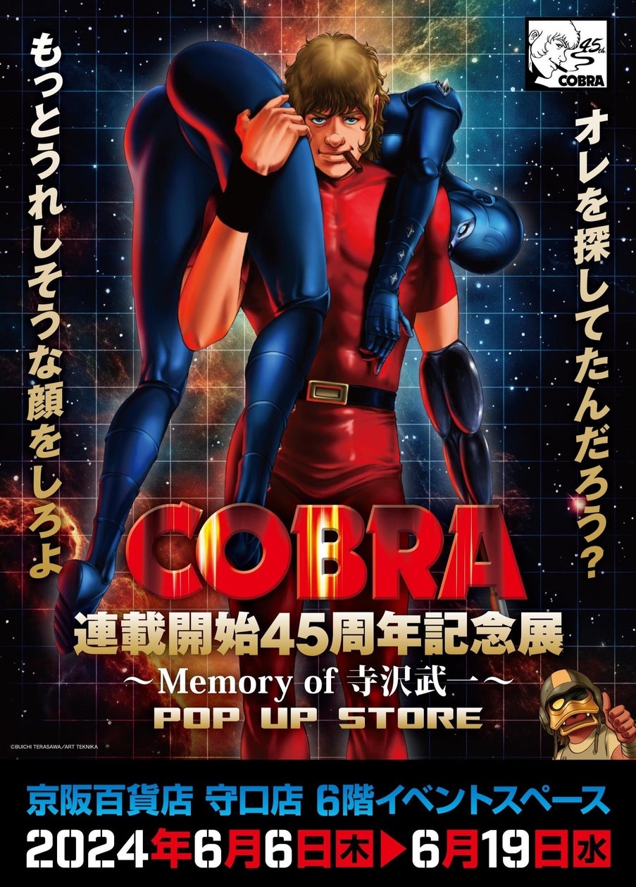 SFアクション漫画の金字塔『コブラ』が45周年を迎え、寺沢武一先生を偲ぶ記念展が京阪百貨店守口店で開催中です。
