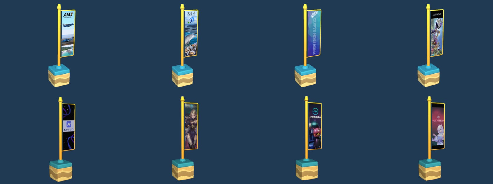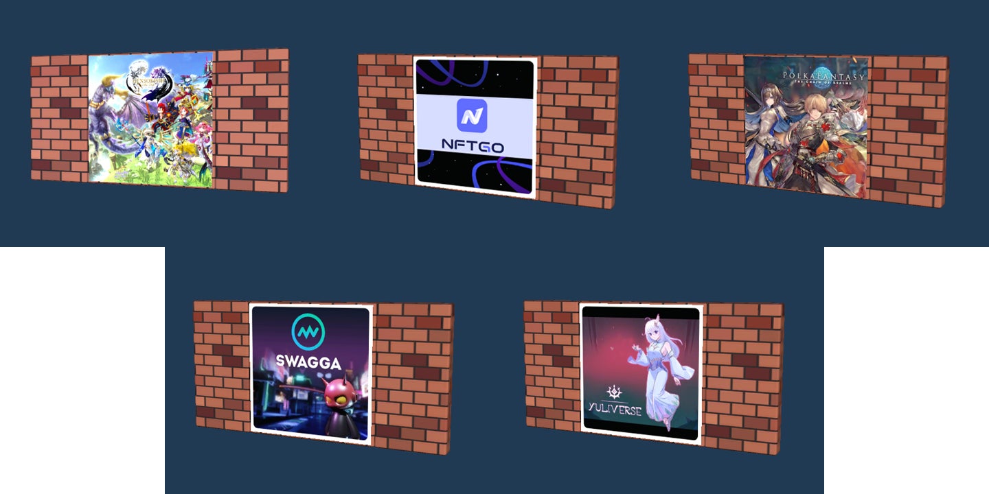 また、新たに以下の地方自治体、企業、Web3プロジェクト(敬称略、順不同)に協賛いただき、多数のコラボブロックが追加され、フラッグやウォールでステージを賑やかに彩ることができるようになっています。