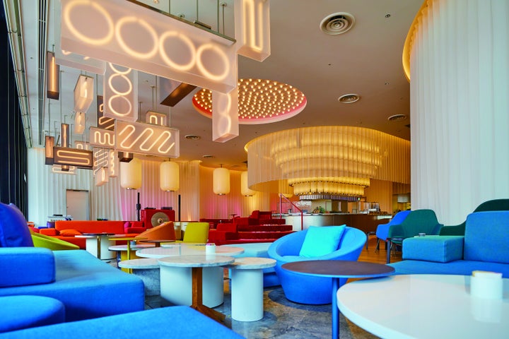 W大阪は「大人の遊び場」をコンセプトに、安藤忠雄氏が監修した外観とカラフルな内装が特徴です。