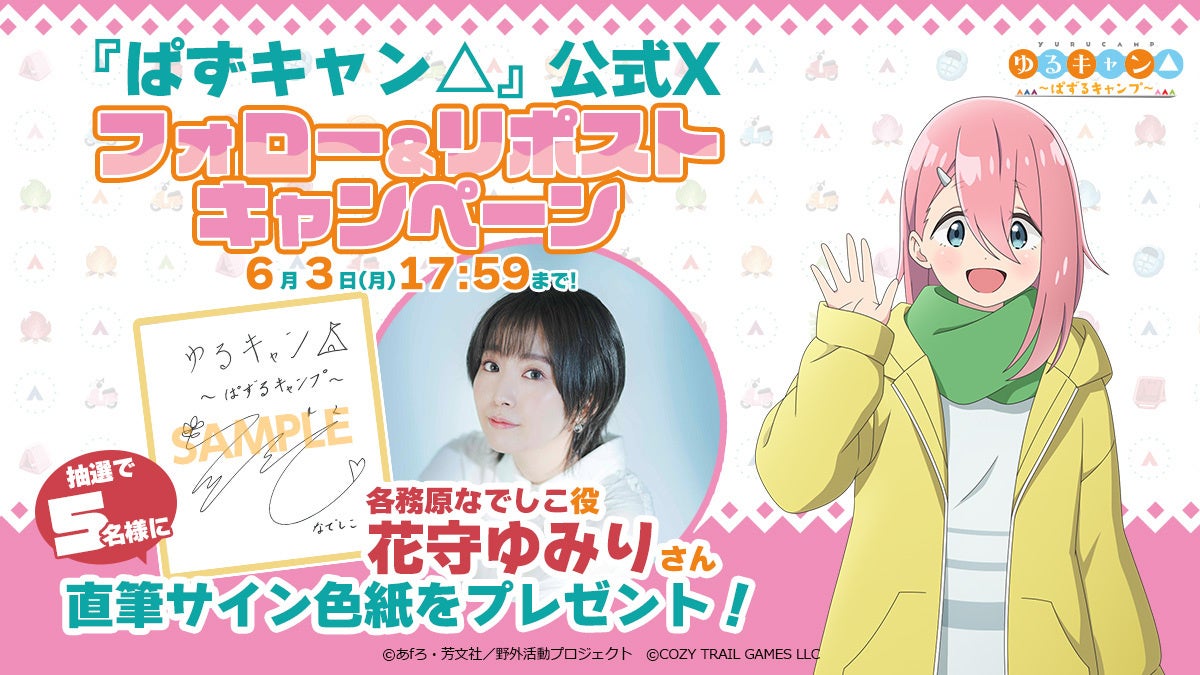 - ぱずキャン△、ぱずキャン△、ぱずキャン△、ゆるキャン△、ゆるキャン△ SEASON3、ゆるキャン△ ~ぱずるキャンプ~