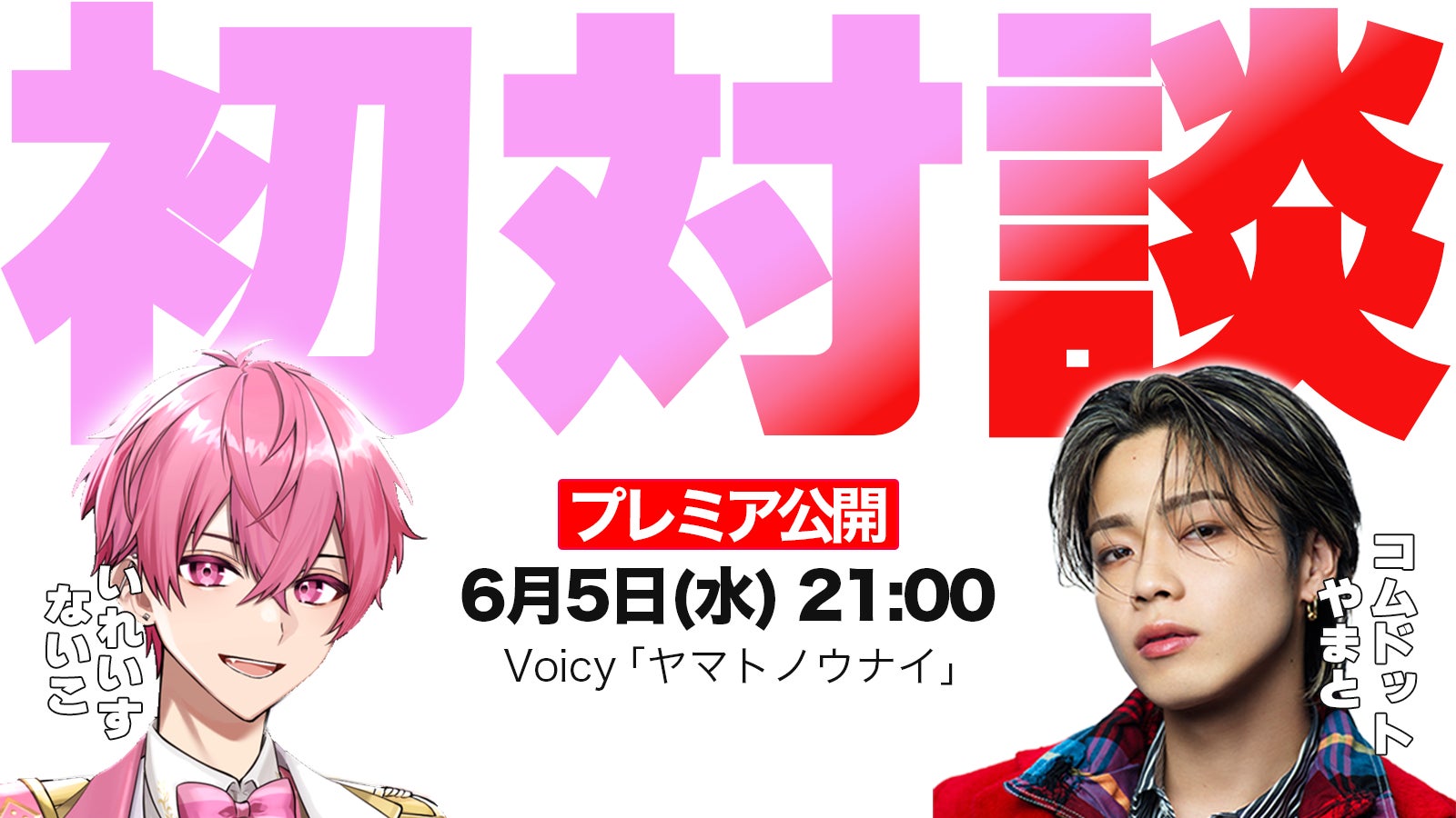 株式会社Voicyが運営する音声プラットフォームVoicyでは、2024年6月5日(水)21時に、YouTubeクリエイター コムドットやまとさんと、いれいすのリーダーないこさんの特別対談がプレミア公開されます。