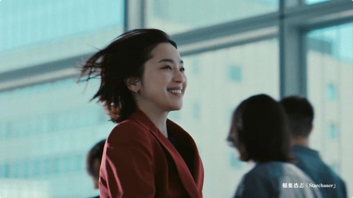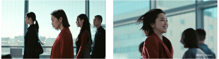 CMは女性社員が挑戦するストーリーで、中村アンさんはトレーニングを積み重ね、息切れせずに走り抜くシーンを演じました。