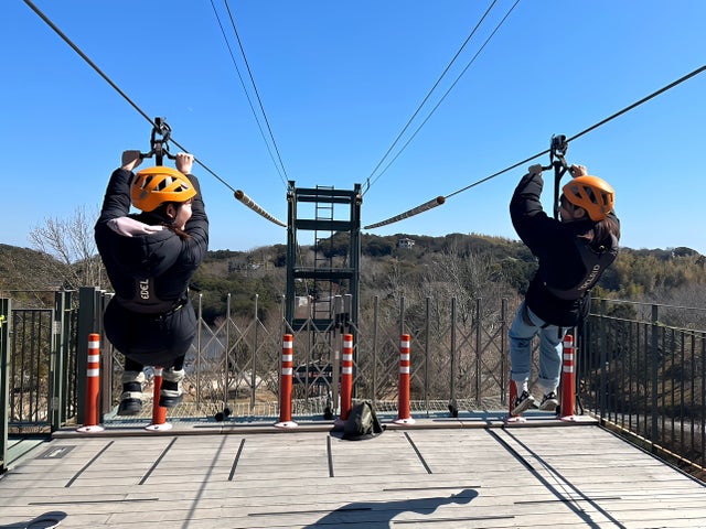 - ニジゲンノモリ、ドキドキジップライン、フォトプロップス、春のペアジップライン