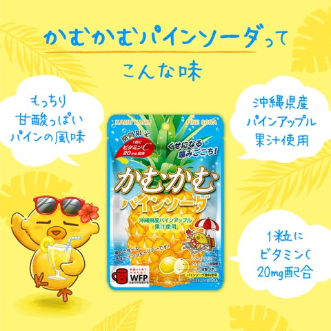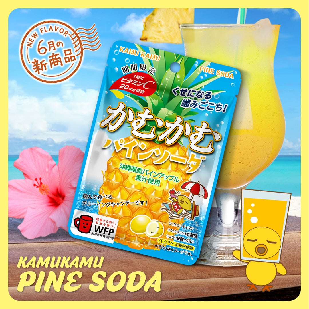 夏にぴったりな炭酸系フレーバーとして、パインソーダ味の「かむかむパインソーダ」が新登場。