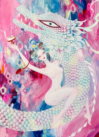 現代アーティストの神田さおりが、「龍と女神のハーモニー」をテーマにした展覧会「生命讃歌ー Self Love For World Peaceー」を開催します。