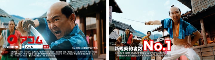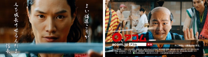 アコムの新CM「侍ビッグ3」では、信長と家康が刀の音を鳴らすシーンが見どころ。