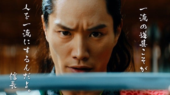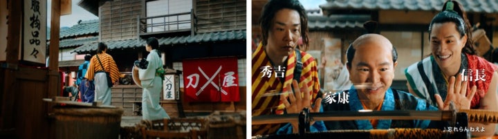 信長のキレキレな刀の音に感銘を受けた家康が名刀を手に入れたいと思い、CMは幕を閉じる。